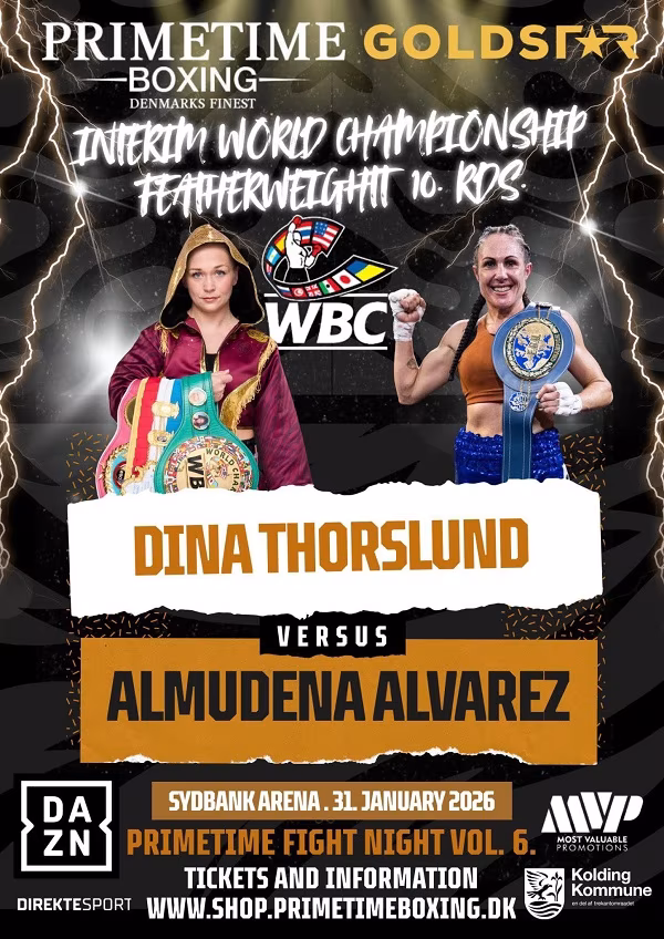 La campeona de Europa del peso superpluma Almudena Álvarez (7-3, 2 KO) afrontará una oportunidad muy importante en su carrera el 31 de enero, el título interino WBC pluma. La madrileña se enfrentará a la experimentada excampeona mundial en dos categorías (gallo y supergallo) y excampeona europea del supergallo Dina Thorslund (23-0, 9 KO), en el Sydbank Arena de Kolding (Dinamarca). El combate estará pactado a diez asaltos de dos minutos. Recordemos que Álvarez se coronó campeona de Europa en noviembre de 2024 contra la cántabra Marian Herrería (8-3, 0 KO). La madrileña se preparaba para afrontar su primera defensa continental ante la italiana Martina Righi (8-6-1, 3 KO), aunque tras recibir esta oferta no ha podido rechazarla, posponiendo así la revalidación del europeo, que podrá hacer aunque pierda el 31 de enero, al ser un combate pactado en otro peso distinto al que es monarca.