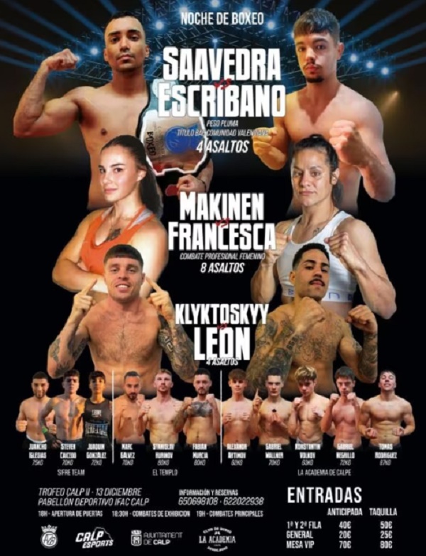 En esa pelea, se medirán a ocho asaltos la española Natalia Francesca (7-6, 0 KO) y la finlandesa Teresa Makinen (4-0, 0 KO), que realiza su carrera en nuestro país al ser representada y entrenada por Pow. El choque representa la veteranía de Natalia, campeona de España en el peso gallo y aspirante al título europeo gallo y pluma, frente a la juventud de la ascendente escandinava.