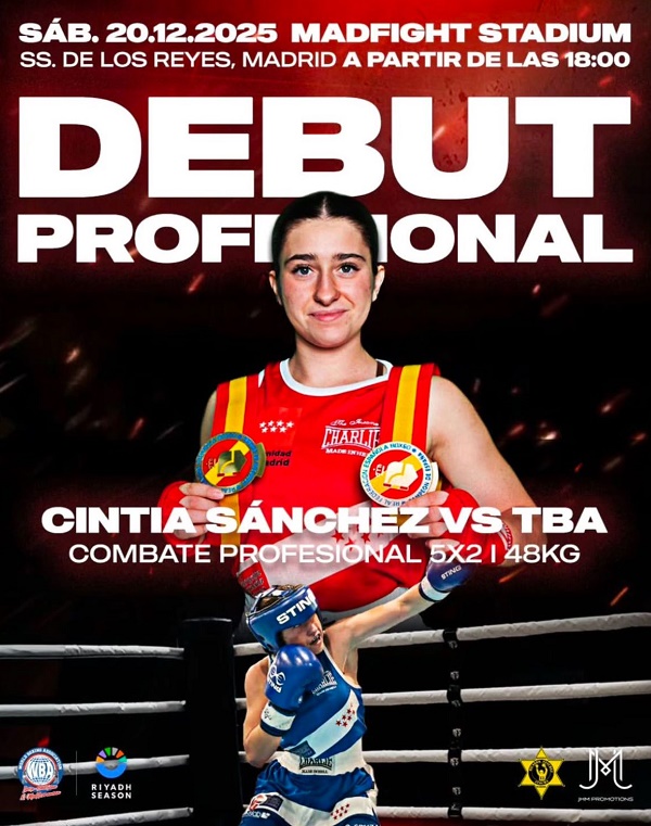 La púgil madrileña Cintia Sánchez, campeona de España Joven 2025, debutará como profesional el próximo 20 de diciembre en el Mad Fight Stadium de San Sebastián de los Reyes (Madrid). Su rival está aún por confirmar, lo que sí sabemos es que se enfrentarán en un duelo pactado a cinco asaltos de dos minutos en el peso mínimo. La boxeadora de Team Sánchez, y respaldada por Ricardo Sánchez Atocha, llega tras conseguir su sexto título nacional amateur, en este caso se alzó con el de la categoría joven de -48 kilos en la edición en Palencia que culminó el pasado 7 de diciembre.