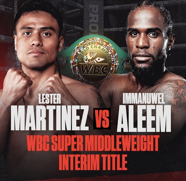 El boxeador guatemalteco Lester Martínez (19-0-1, 16 KO) tiene previsto regresar al cuadrilátero el 21 de marzo. Se enfrentará al estadounidense Immanuwel Aleem (22-3-3, 14 KO), en el National Orange Show Event Center de San Bernardino, California. Este duelo es de gran relevancia en la categoría de peso supermedio (76,2 kg) y representa un paso significativo en la aspiración de Martínez por obtener una oportunidad de título dentro del Consejo Mundial de Boxeo (WBC). Cabe destacar que viene de empatar ante Christian Mbilli (29-0-1, 24 KO) en una pelea épica y en juego estará el título interino WBC que ha dejado vacante el francés Mbilli al subir a campeón absoluto. Martínez a sus 30 años, se presenta invicto y se ha establecido como una figura prometedora en su división. Su carrera profesional ha mostrado un ascenso constante desde sus inicios en el boxeo amateur, donde representó a Guatemala en diversas competiciones internacionales. Se encuentra en busca de una victoria contundente ante un oponente experimentado que podría abrirle las puertas al título mundial.