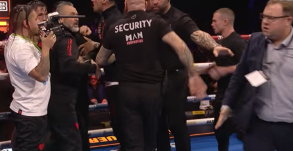 Con Ball ya recuperando fuerzas poco a poco y totalmente consciente, un empleado de seguridad mandaba al Team Figueroa a su esquina para celebrar de manera más controlada; codo normal, hasta aquí. Con los foráneos ya en su rincón, el primero en no actuar correctamente fue Lee Eaton, ahora matchmaker de Queensberry Promotions y, durante muchos años, promotor principal de la extinta y oscura MTK. Eaton recriminó, cuando ya estaban en su rincón, la actitud a los miembros del equipo del texano.