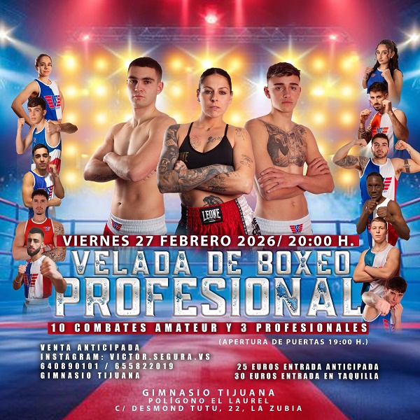 La promotora granadina VS Boxing organiza este viernes 27 de febrero una velada en el Gimnasio Tijuana de La Zubia (Granada), que contará con tres combates profesionales y diez amateurs. La protagonista principal es la armillera Sandra ‘Rodeos’ Muñoz (2-0, 1 KO), que volverá al ring tras sufrir una lesión de rodilla, este regreso irá acompañado de los locales Joaquín Chirosa y José Manuel Carrillo ‘Nene’, que harán sus debuts en el boxeo sin camiseta.
