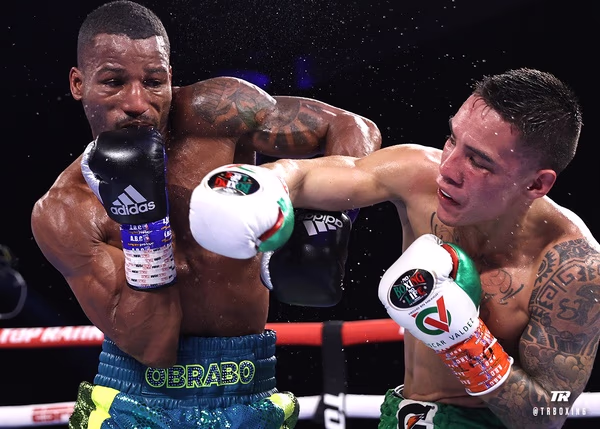 Valdez (30-0, 23 KO) se enfrentaba al aspirante brasileño Robson Conçeiçao (16-1, 8 KO), duelo de exolímpicos invictos como profesionales. Los primeros asaltos fueron bastante igualados pese a lanzar más propuestas Conçeiçao, con ambos intentando dominar con el jab y, desde el segundo, intentando conectar golpes de poder para llevar a los jueces a su terreno y dañar al adversario. El brasileño tuvo momentos brillantes en el cuarto y quinto episodio de los doce reglamentarios, pero Valdez mostró buena capacidad de encaje y nunca sufrió demasiado, pese a ir claramente por debajo en las cartulinas a mitad del pleito.